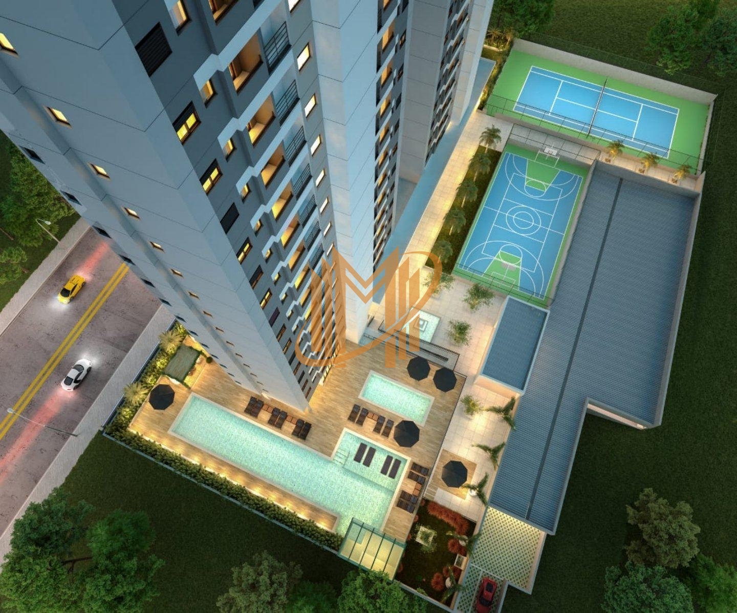 A portaria 24 horas, elevadores panorâmicos e um depósito delivery com câmara climatizada oferecem uma experiência residencial sem esforço. A área de lazer é um capítulo à parte: desde quadras poliesportivas até um sky lounge bar no 28° andar, cada detalhe é pensado para seu bem-estar.